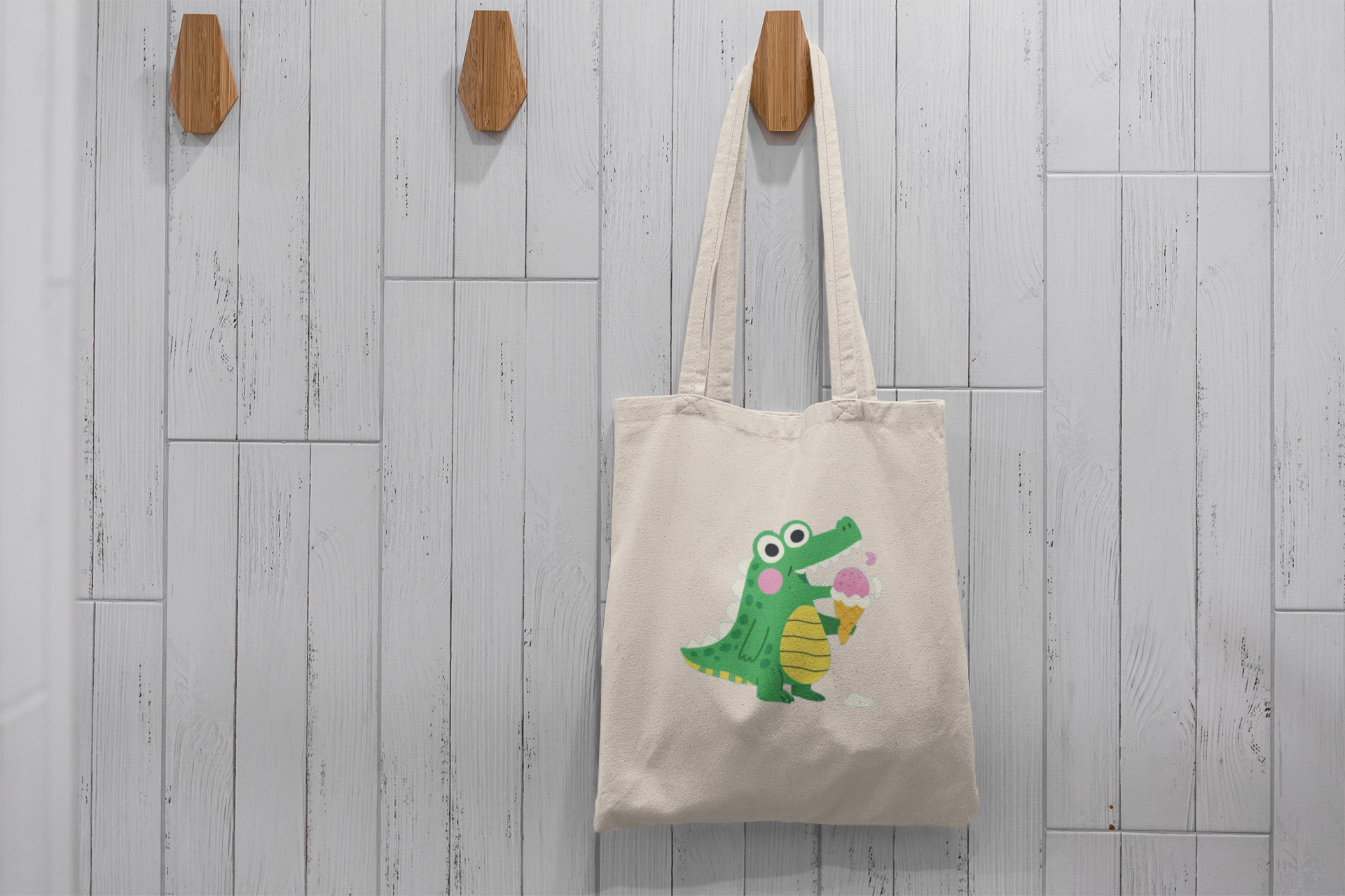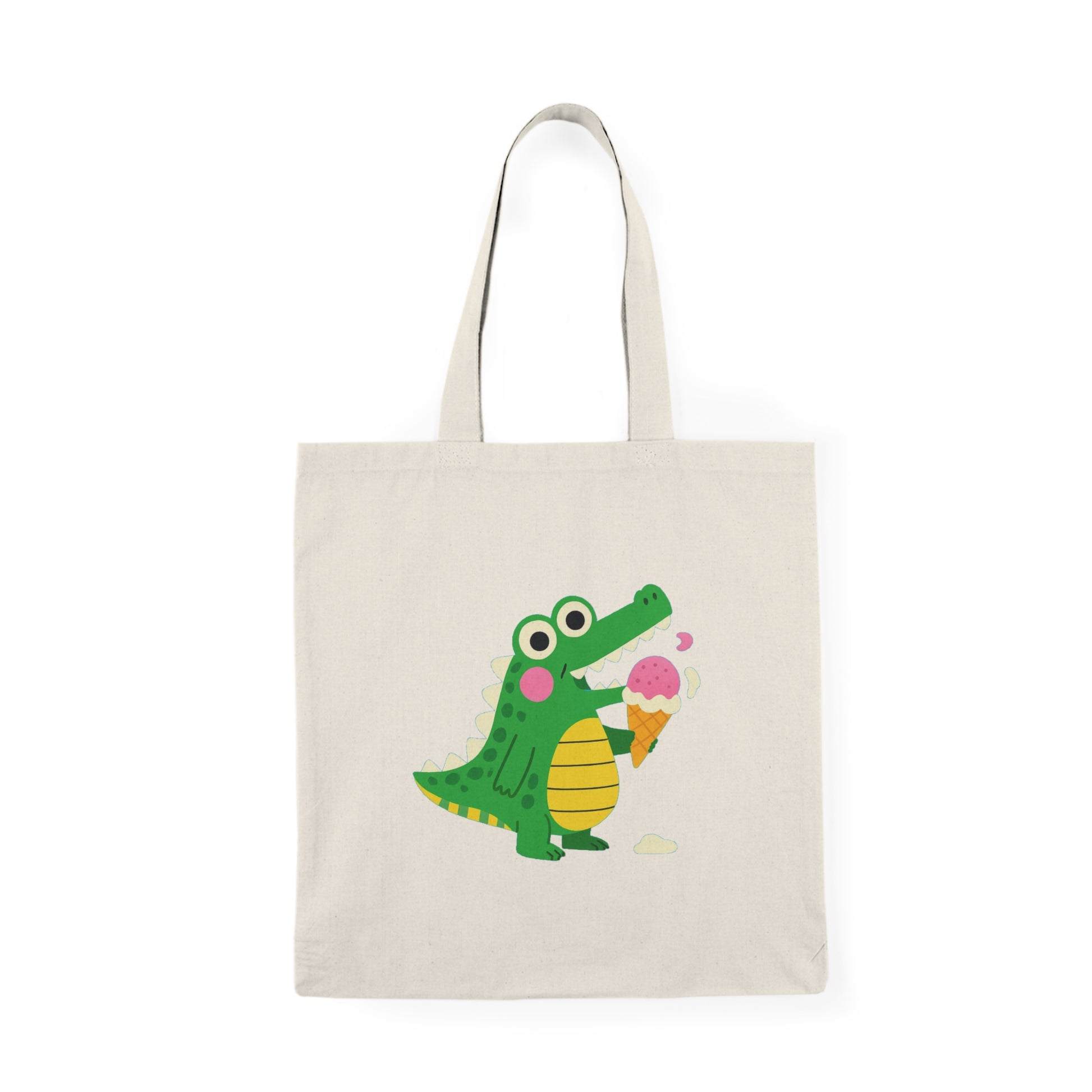 Cute Crocodile Eating Ice Cream Tote Bag – Funny Cartoon Animal Canvas Bag for Kids & Animal Lovers